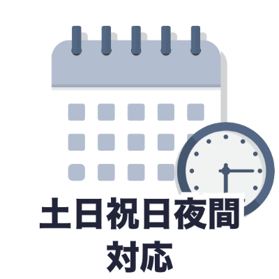 平日19時以降の夜間、土・日・祝日も対応しております。